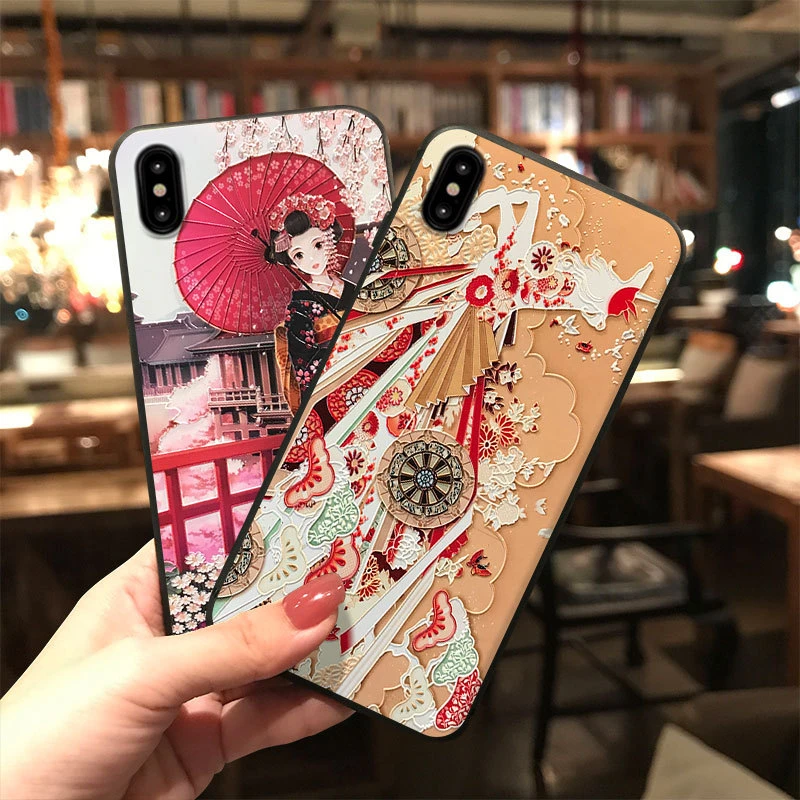 Japanese Kimono Girl Embossed Phone Case For Iphone 11 12 13promax X Xr Xsmax Capa Soft Tpu Back Cover For Iphone 7 8 Plus Coque Mobile Phone Cases Covers Aliexpress
